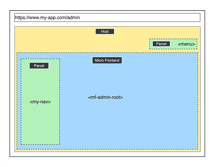In a micro-frontend architecture, we distinguish various types of entities, each adhering to a distinct concept: