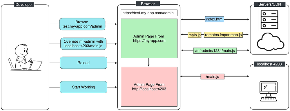 Now that we understand the principles of the import map and the fact that we can override the bundles loading directly in the browser, let’s see how we can get the advantage of that concept within our development process: