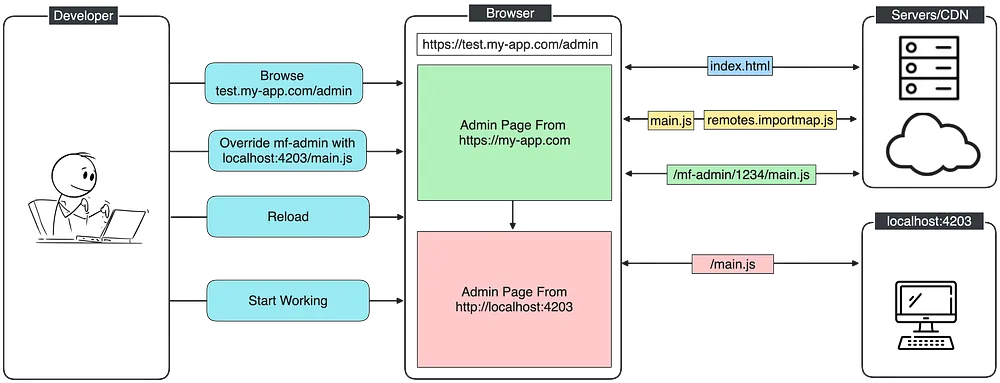 After the reload, the micro frontend loaded by the browser will be not the one on the distant server but the one on your local machine.