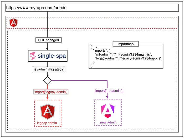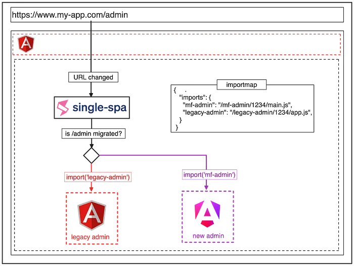 At that time, the micro frontend architecture was not yet popular and only the single-spa library was mature enough. It supports many frameworks, including AngularJS and Angular, making it a perfect choice for us!