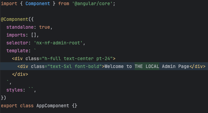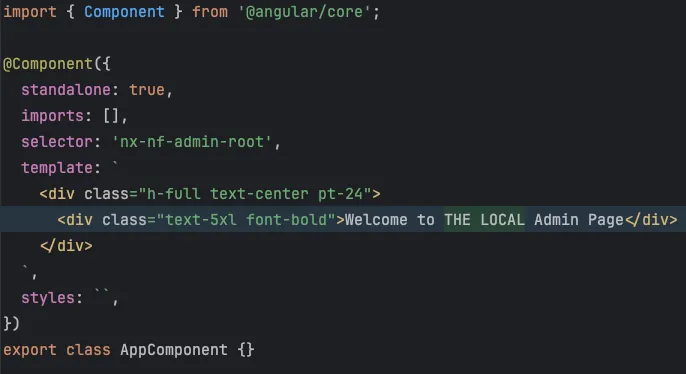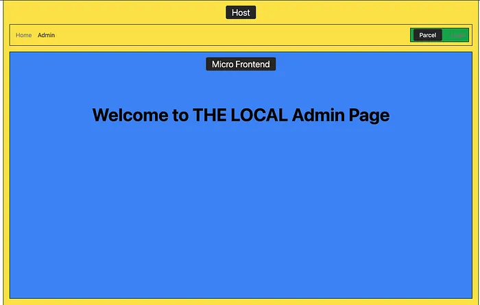 6. Then, make modifications to the mf-admin micro frontend. For example, change the message from “Welcome to the Admin Page” to “Welcome to the LOCAL Admin Page”