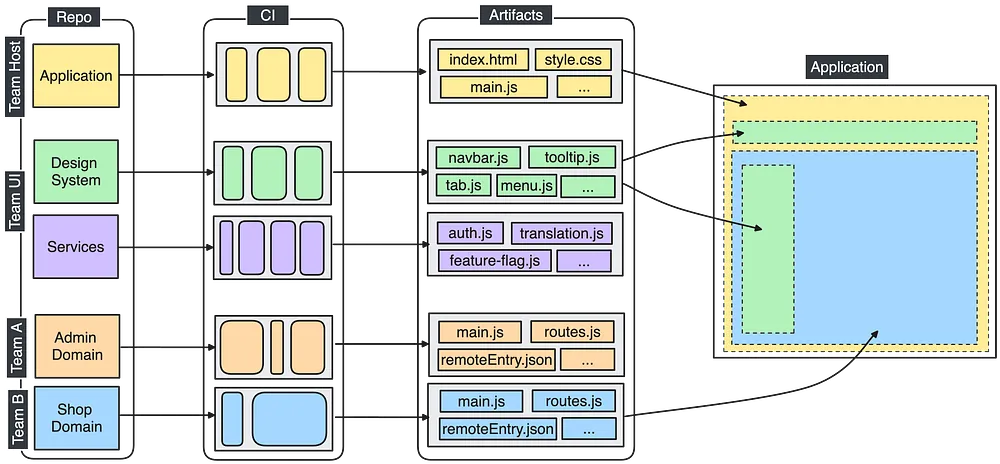 Let’s start with a short definition: the micro frontend architecture involves breaking down a frontend application into smaller, more manageable pieces — each responsible for a distinct feature or domain of your application. It’s often compared to the microservices concept but at the frontend layer.