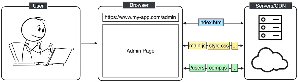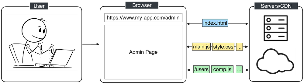 To grasp the following subjects, I believe it’s crucial first to recall the basics of the web, focusing on the primary flow of a browser running a web application: